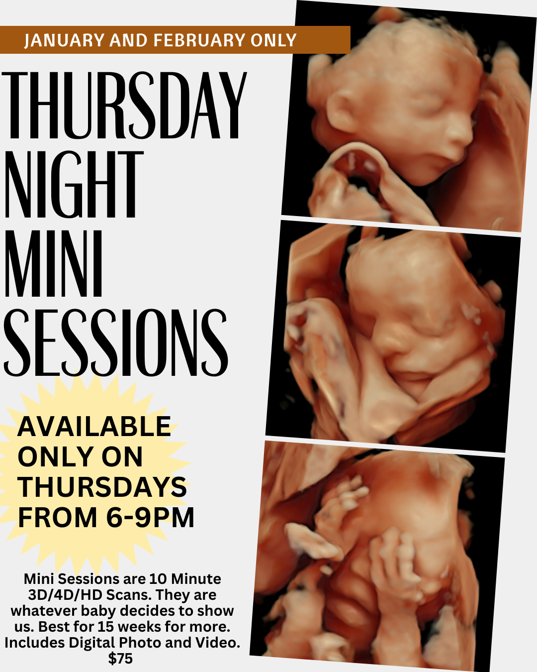 The Mini Session is a 10 minute 2D/3D/4D/HD scan